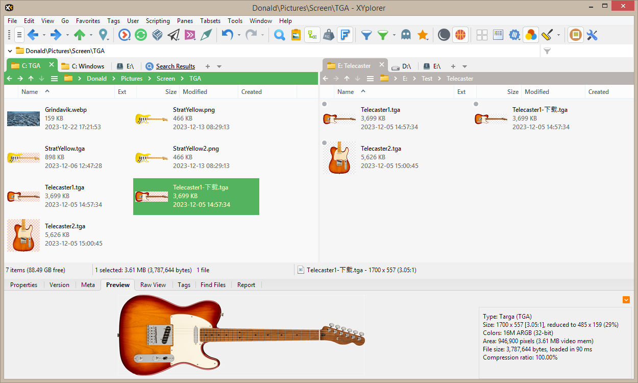 使用 TAB 键,您可以快速在两个窗格之间来回跳转以对比焦点项目。窗口底部的信息面板始终指向活动窗格。