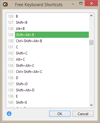 "所有空闲快捷键..."按钮显示当前所有未使用的快捷键列表,使您可以轻松找到并选择一个容易记忆的快捷键。