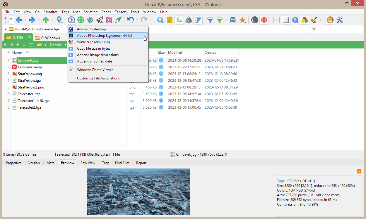 此菜单的具体内容取决于 (A) 当前选中的文件和 (B) 您的便携式文件关联 (PFA) 设置,因此它是便携且易于管理的。