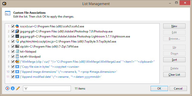 这很简单,但对于喜欢在文件名后追加修改日期的人来说是一个巨大的时间节省器。将以下定义添加到您的便携式文件关联集合中(工具 | 自定义文件关联):