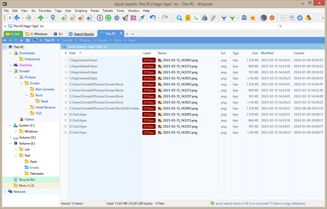 - 使用标签选项卡搜索标记、标签和备注(XYplorer 10.90 起)