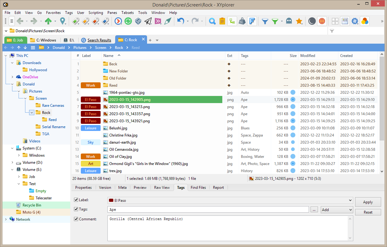 XYplorer 提供标签式文件管理作为传统层级式树形文件管理的替代方案。您可以为任何文件或文件夹分配任意数量的标签。是的,任何文件,不仅仅是文档和媒体文件。